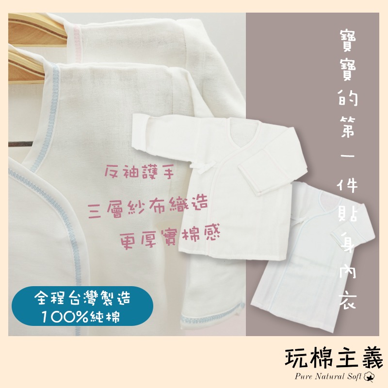 ☑品名:新生兒《三層紗》護手型紗布內衣