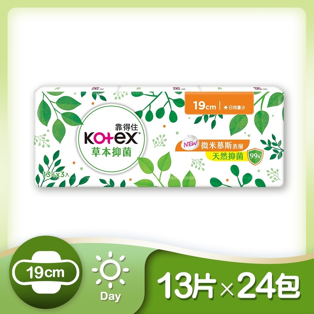 Kotex靠得住 草本抑菌衛生棉 日用 19cm 13片x3包x8串/箱