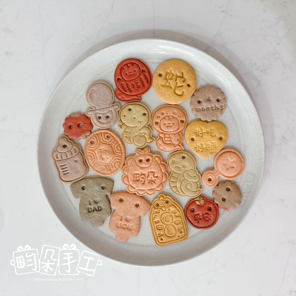 成份單純的奶油餅乾,蔬菜粉調色,元寶蛇,蘋果蛇,相信每一個孩子都帶財,為父母帶來幸運及幸福☺️