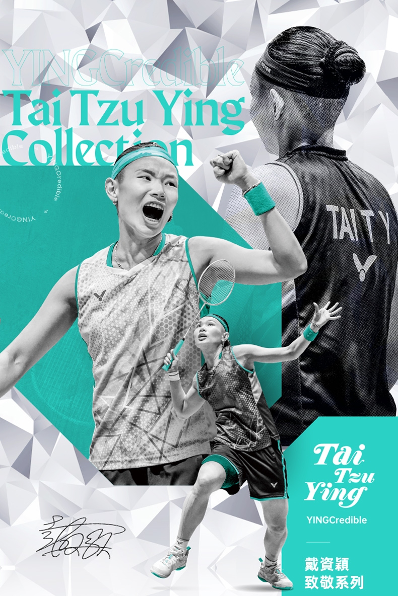 「YINGcredible - 戴資穎致敬系列」採用鑽石切割紋理為設計主題,以致敬小戴羽球場上無可取代的輝煌成就。系列色系沿用小戴裝備的經典白色,並融入高辨識度的綠松色,象徵她與眾不同、耀眼奪目的個人風格。