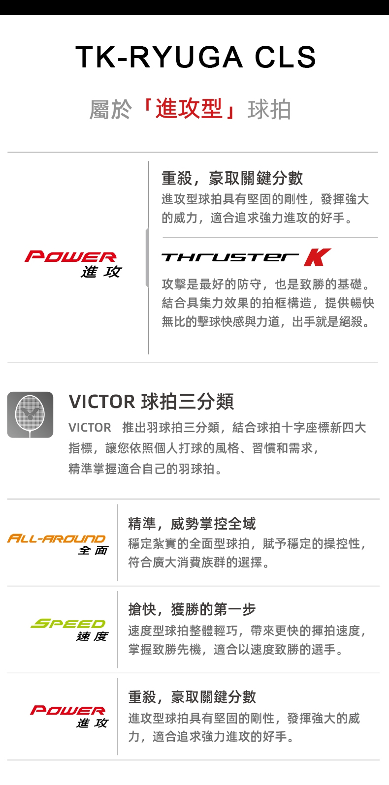 𝙎𝙊𝙎𝘼羽球超市|VICTOR 勝利 突擊 TK-RYUGA CLS 小龍牙 羽球拍