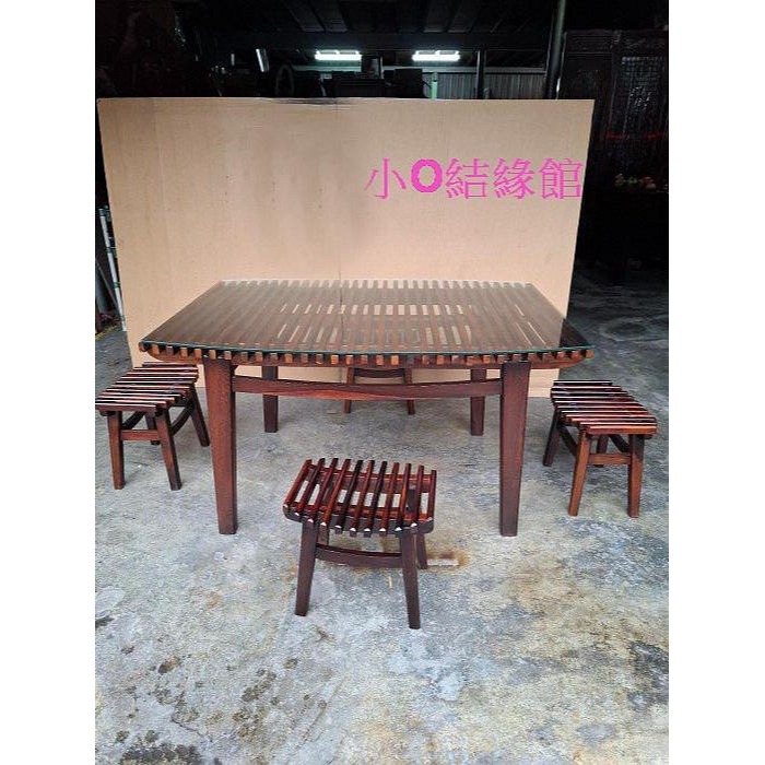 由雞翅木製成(ㄧ桌四椅),相當漂亮,值得收藏,桌長126cm,寬88cm,高68cm,(含玻璃),椅子長38cm,寬30cm,高38cm.