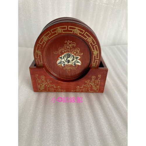 由花梨木製成,相當漂亮又實用,盒子長11.5cm,高4cm,杯墊長9.5cm,厚0.7cm.