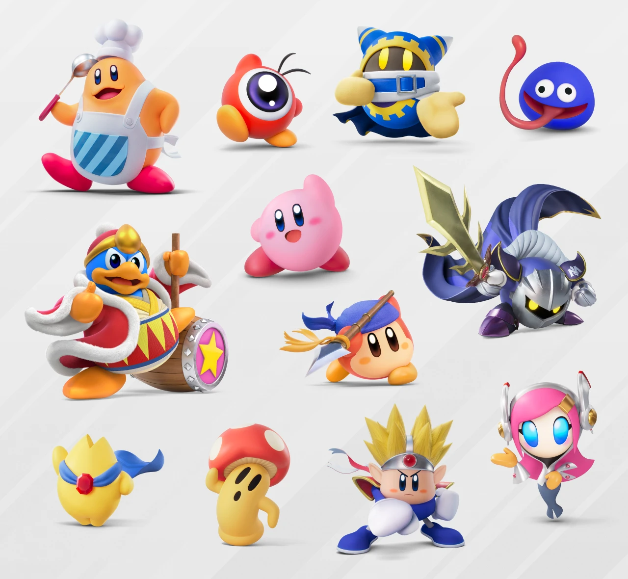 可供選擇的「飛行者」不限於卡比,包括帝帝帝大王、魅塔騎士在內,玩家可以操作眾多角色。每位飛行者的能力值與特技都各不相同,嘗試尋找你最喜歡的角色吧。