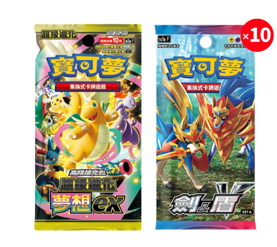 <普雷伊> 寶可夢集換式卡牌遊戲 擴充包「超級進化夢想eX」一中盒+ 擴充包「劍&盾」SETA*10包