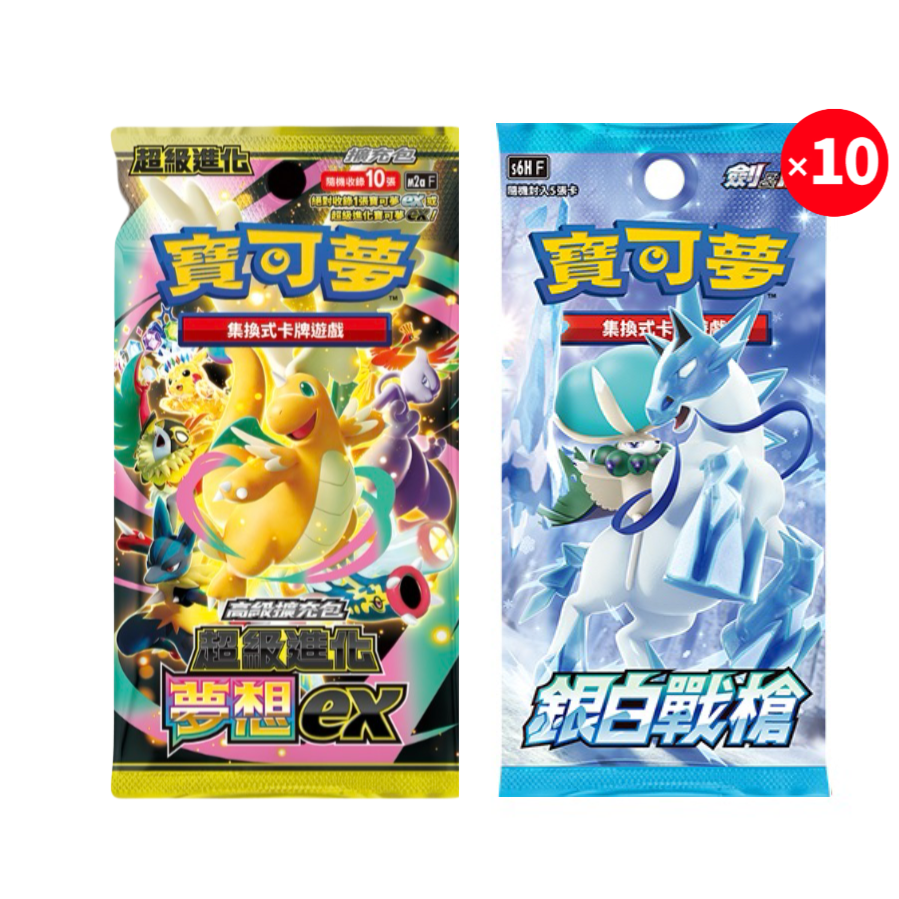 <普雷伊> 寶可夢集換式卡牌遊戲 擴充包「超級進化夢想eX」一中盒+ 擴充包「銀白戰槍」*10包