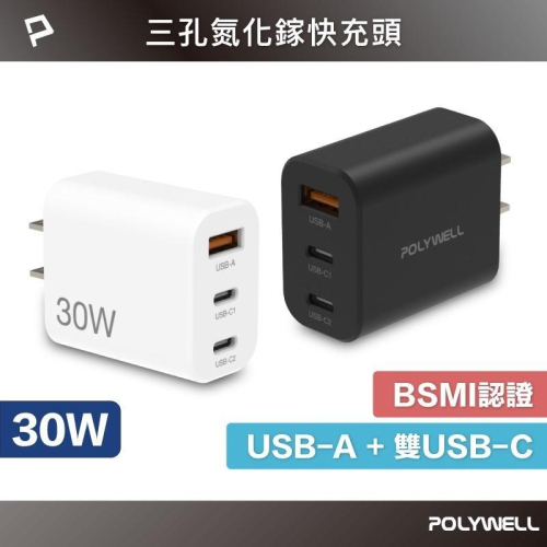 ◎ 產品: 30W三孔PD氮化鎵快充頭