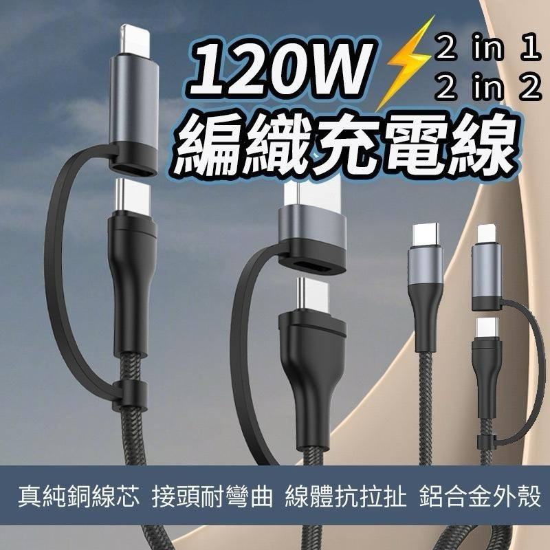 ◎ 規格: 二合一PD編織快充線:TyeC to TypeC,TypeC to 蘋果