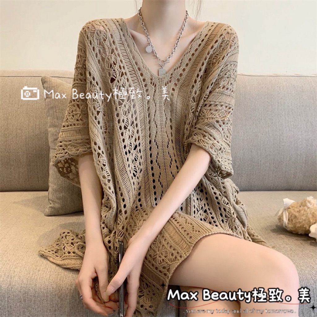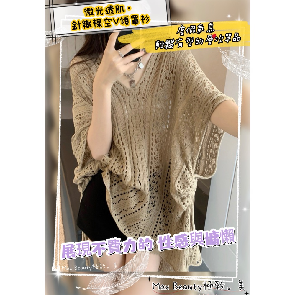 🌟這款V領鏤空針織罩衫以輕薄針織,打造出若隱若現的透膚感,展現不費力的性感與慵懶,無論是沙灘外罩、城市內搭還是涼夏日常穿搭都能完美消詮釋
