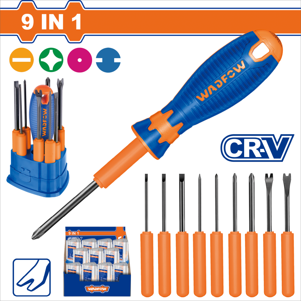 件可互換螺絲起子套裝 材質:鉻釩 包括: 1 件 SL3x65mm 螺絲起子 1 件 SL5x65mm 螺絲起子 1 件 SL6x65mm 螺絲起子 1 件 PH0x65mm 螺絲起子 1 件 PH1x65mm 螺絲起子 1 件 PH2x65mm 螺絲起子 1 件 5x65 除釘器 1 件 3x65 刮錐 1 件 5x65 U 型螺絲起子 配有 1 個獨特設計的可互換手柄 採用塑膠盒包裝 |