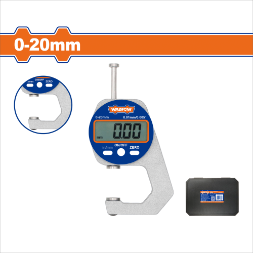 | 範圍:0-20mm 讀數:0.01mm 電池 3V 扁平測量頭 可測量布料、皮革、線、柔軟物體 任意位置公制/英制轉換 採用塑膠盒包裝 |
