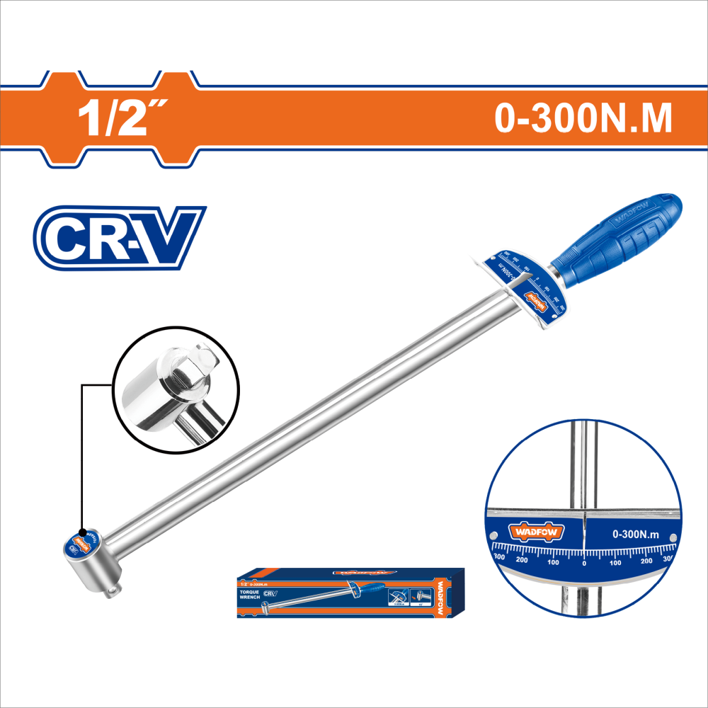 扭力範圍:0-300N.m 方形驅動:1/2" 材質:Cr-V 熱處理 |