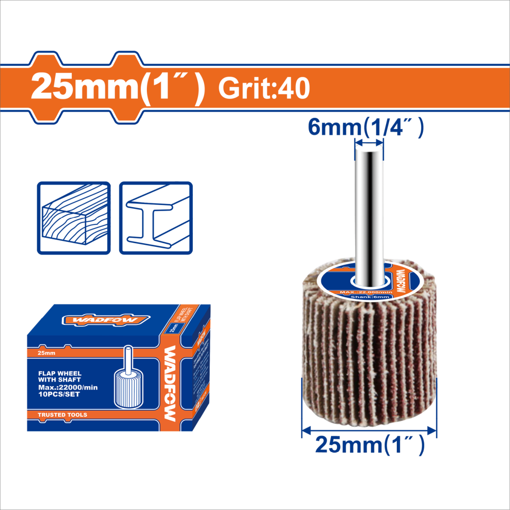 25mmx25x6mm砂粒 等級:40#6mm直徑柄 適用於金屬和木材 |