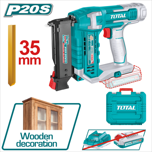 | 電壓:20V 針釘槍類型:10-35mm 驅動速度:3 釘/秒 彈匣容量:140枚 電池和充電器單獨出售 包括: 3600 件針釘 (25mm) 1個氣嘴 1 個插針 3600 件針釘 塑膠盒包裝 |