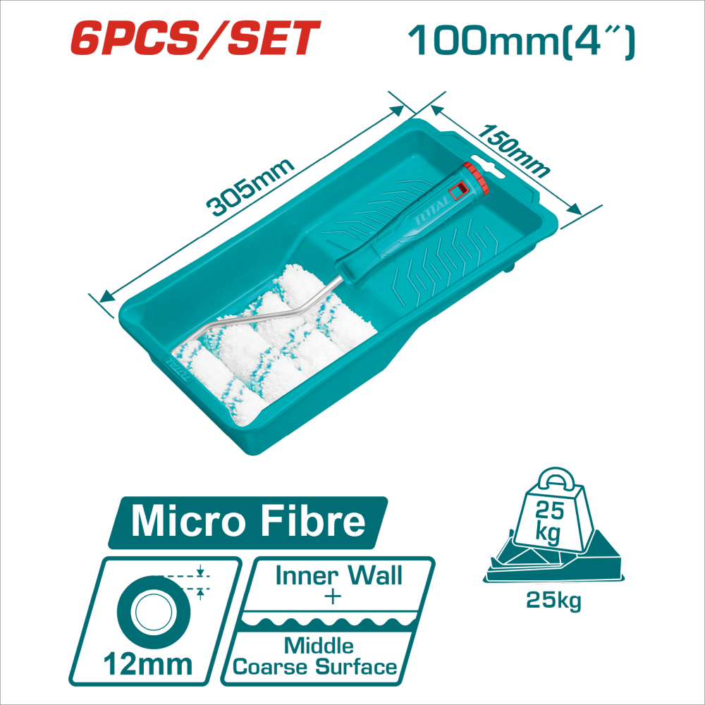 | 材質:超細纖維 尺寸:100mm/4英寸 適用內牆 附 4 個微纖維滾筒套 6mm 中心柄 附 1 個 4 英吋油漆托盤 採用收縮包裝 |