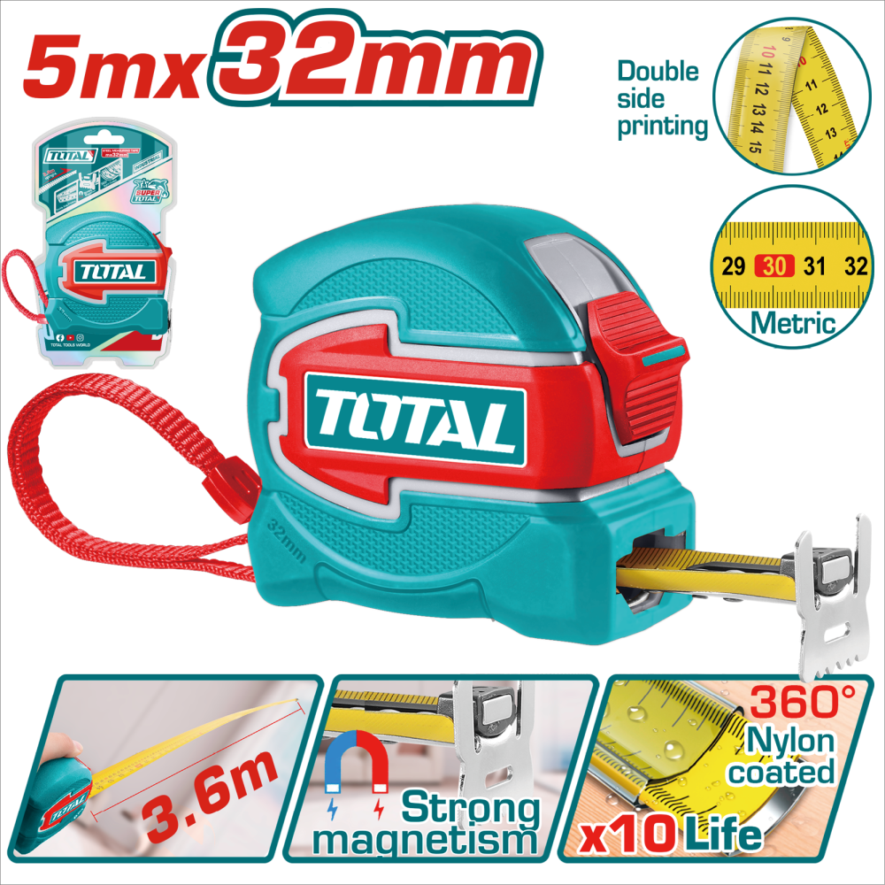 | 長寬:5mx32mm 360°尼龍塗層刀片 雙面列印 僅限公制 磁力雙鉤 採用雙泡罩包裝 |