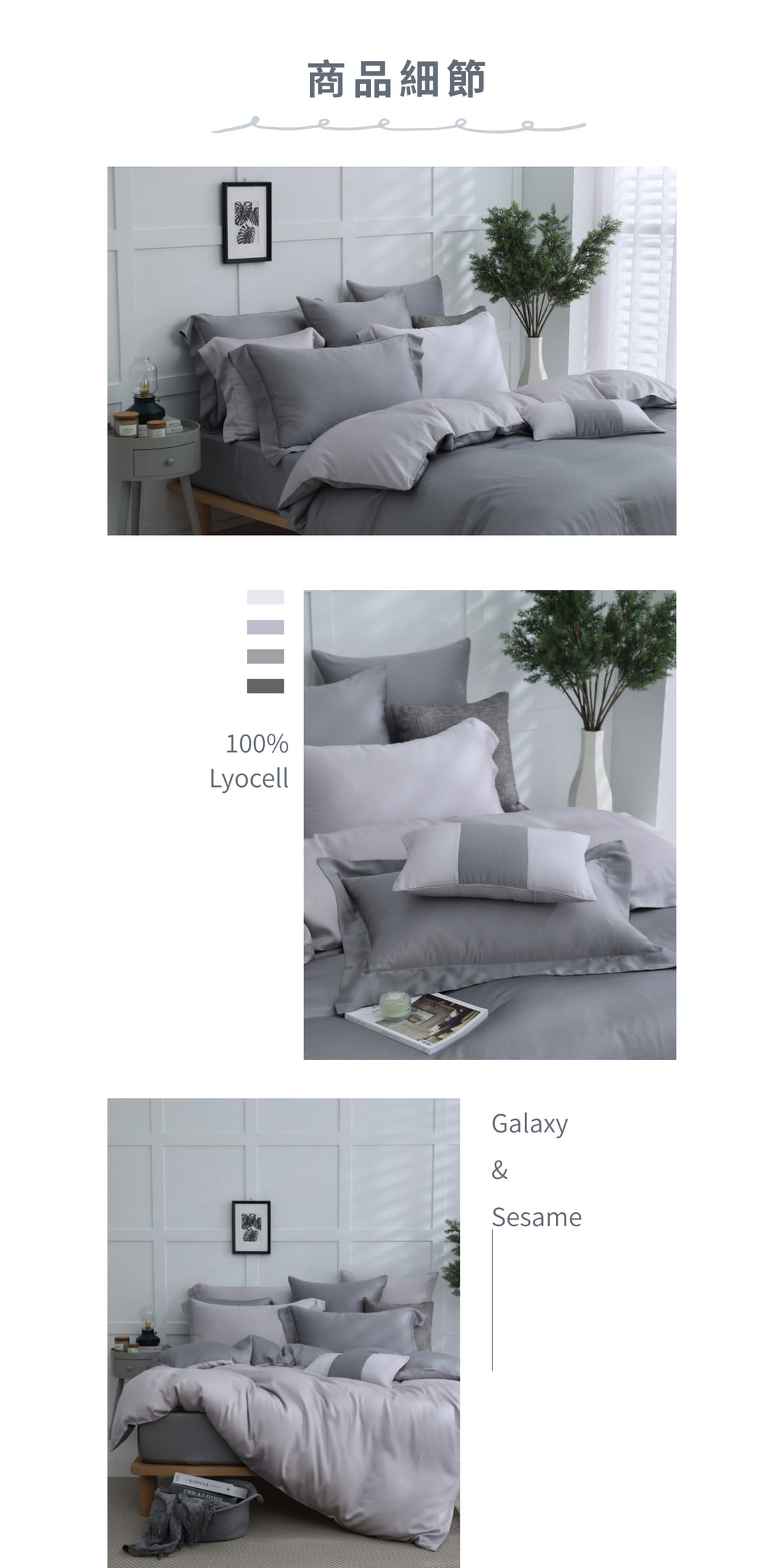 【禾肯居家】60支天絲/單人雙人加大特大/床包枕套三件式/素色系列/銀河芝麻