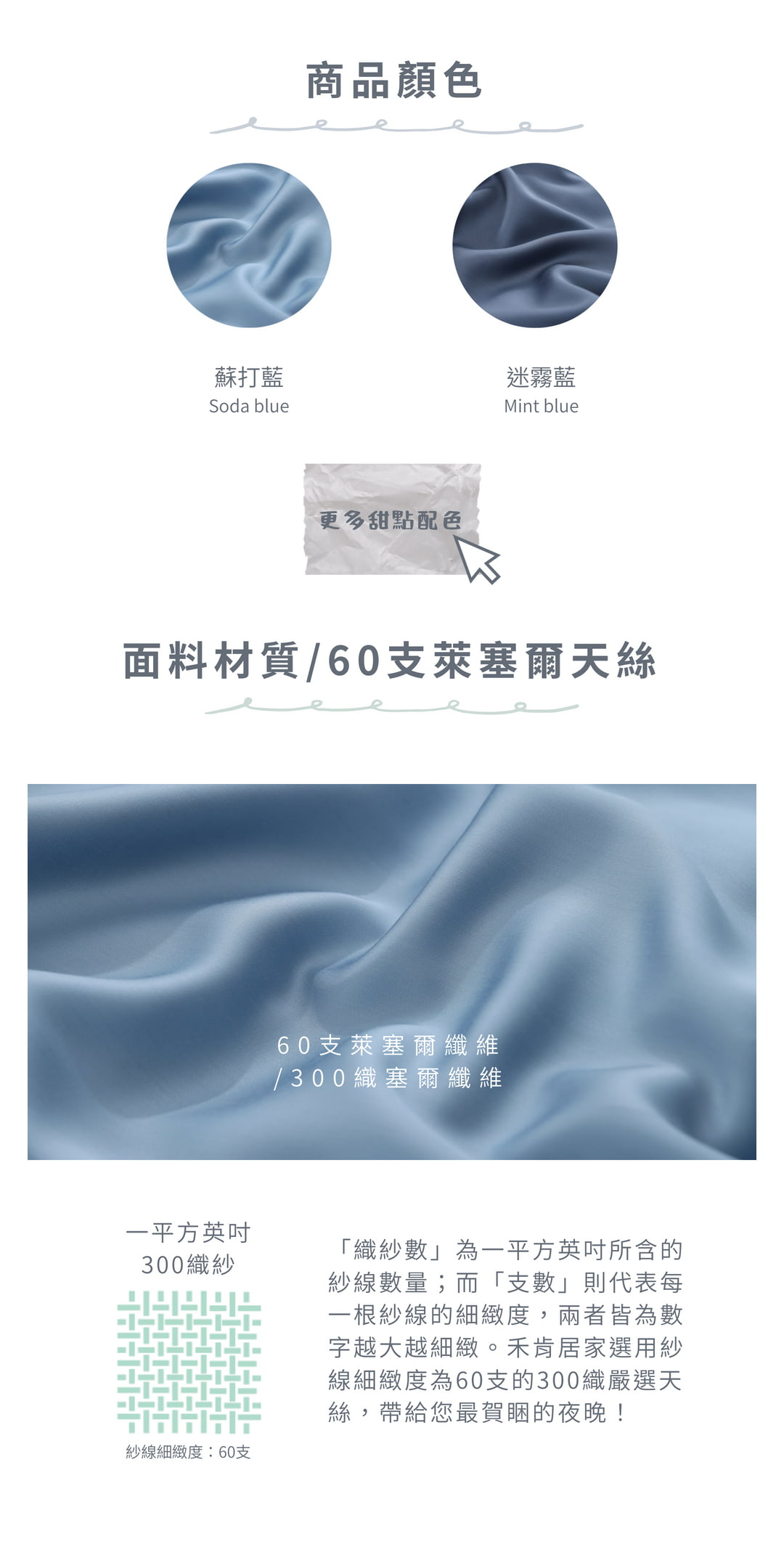 【禾肯居家】60支天絲/單人雙人加大特大/床包枕套三件式/素色系列/蘇打迷霧