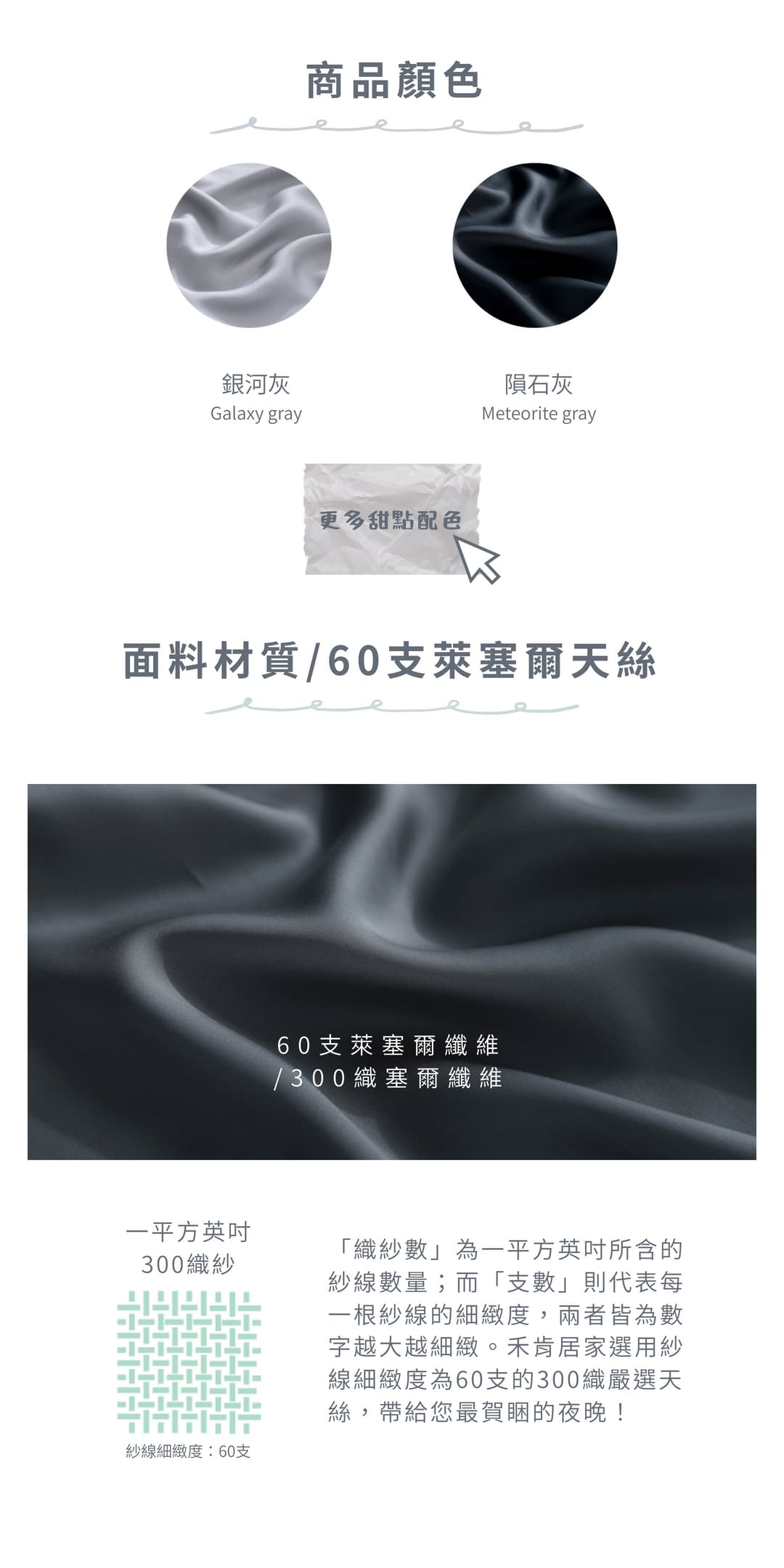 【禾肯居家】60支天絲/單人雙人加大特大/床包枕套三件式/素色系列/銀河隕石