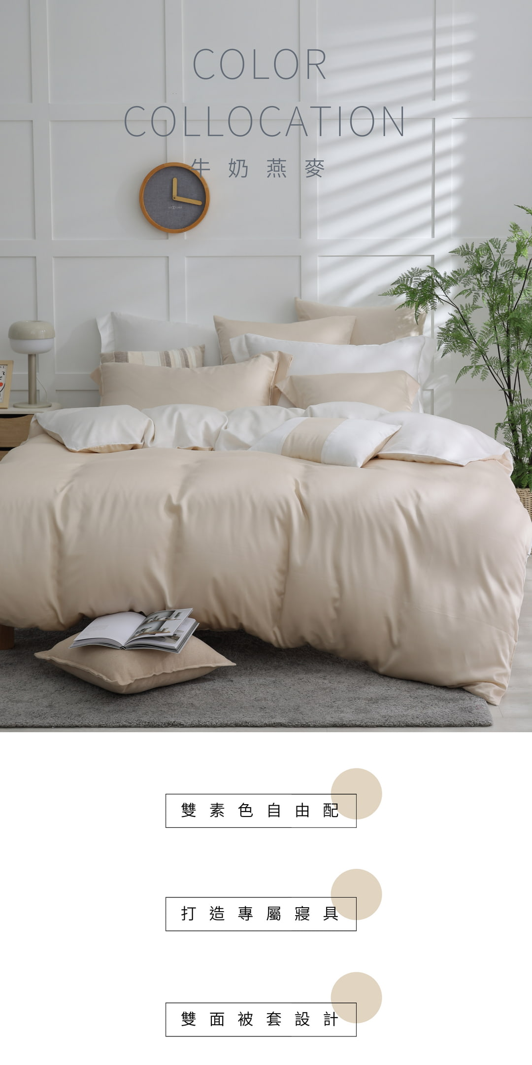 【禾肯居家】60支天絲/IKEA歐規/床包枕套兩用被四件式/素色系列/牛奶燕麥