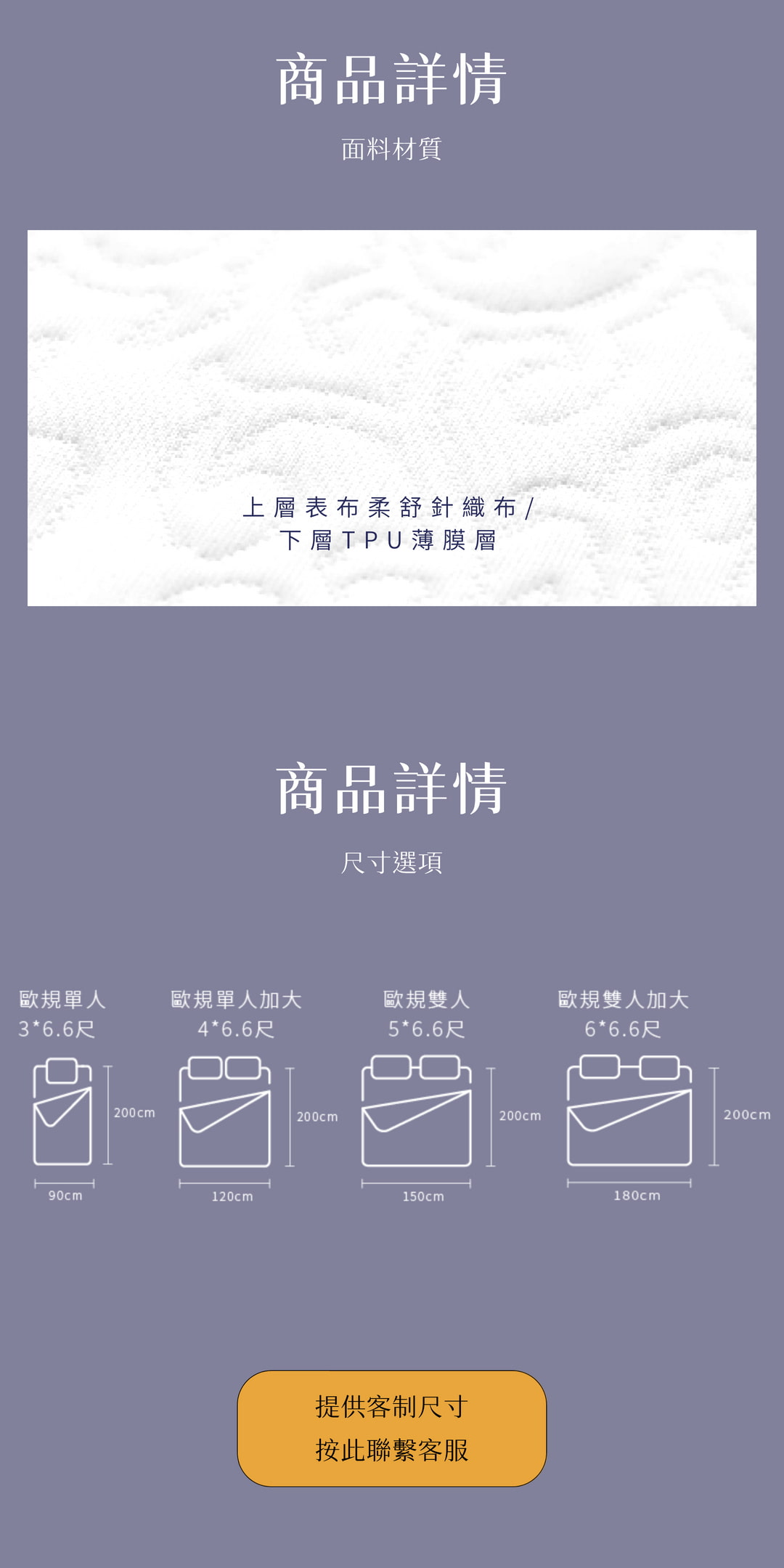 90公分×200公分(3×6.6尺)/可包覆床墊厚度約30公分
