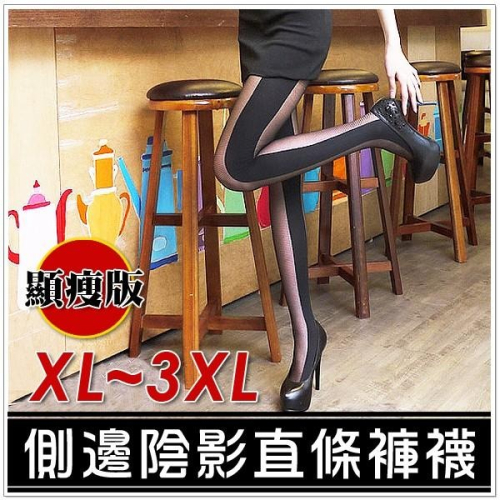 XL~3XL加大大尺碼側邊陰影直條造型褲襪