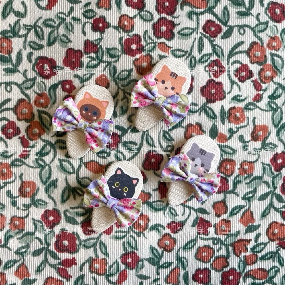 獨家手繪 🐈貓咪 紫碎花蝴蝶結bb夾 髮飾 髮夾 2色