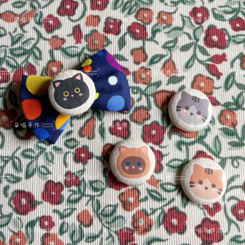 獨家手繪 🐈貓咪 釦釦+彩色波點蝴蝶結 5色 大綁 小綁 髮夾