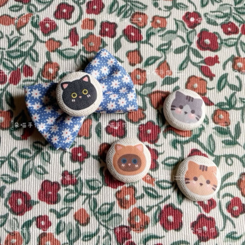 獨家手繪 🐈貓咪 釦釦+藍小星花蝴蝶結 5色 大綁 小綁 髮夾