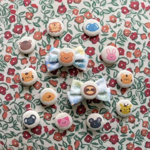 獨家手繪 可愛動物 釦釦+刺繡花布 雙層蝴蝶結 大綁 小綁 髮夾 賣場1