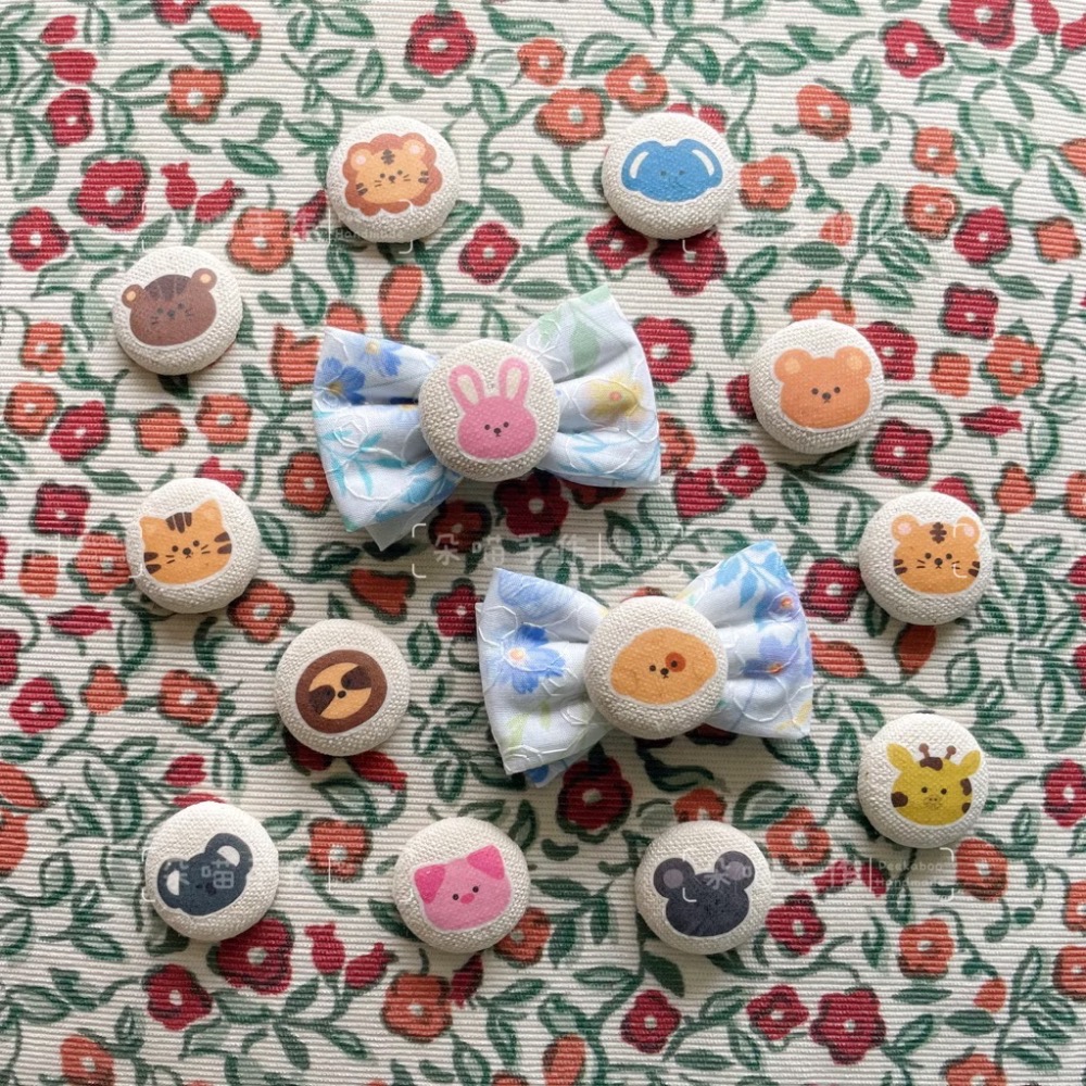 獨家手繪 可愛動物 釦釦+刺繡花布 折折蝴蝶結 大綁 小綁 髮夾 賣場1