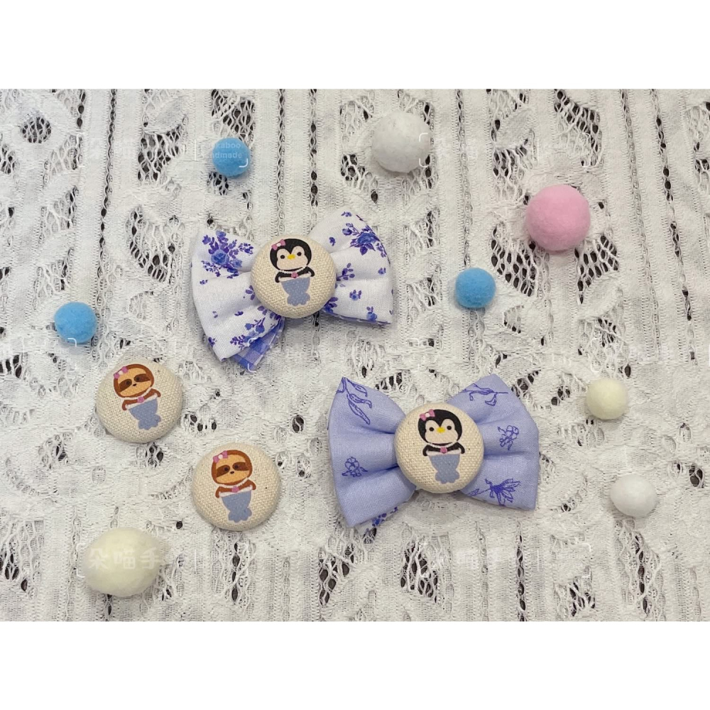 獨家手繪 珍珠美人魚動物 釦釦+紫色系蝴蝶結 4色 大綁 小綁 髮夾