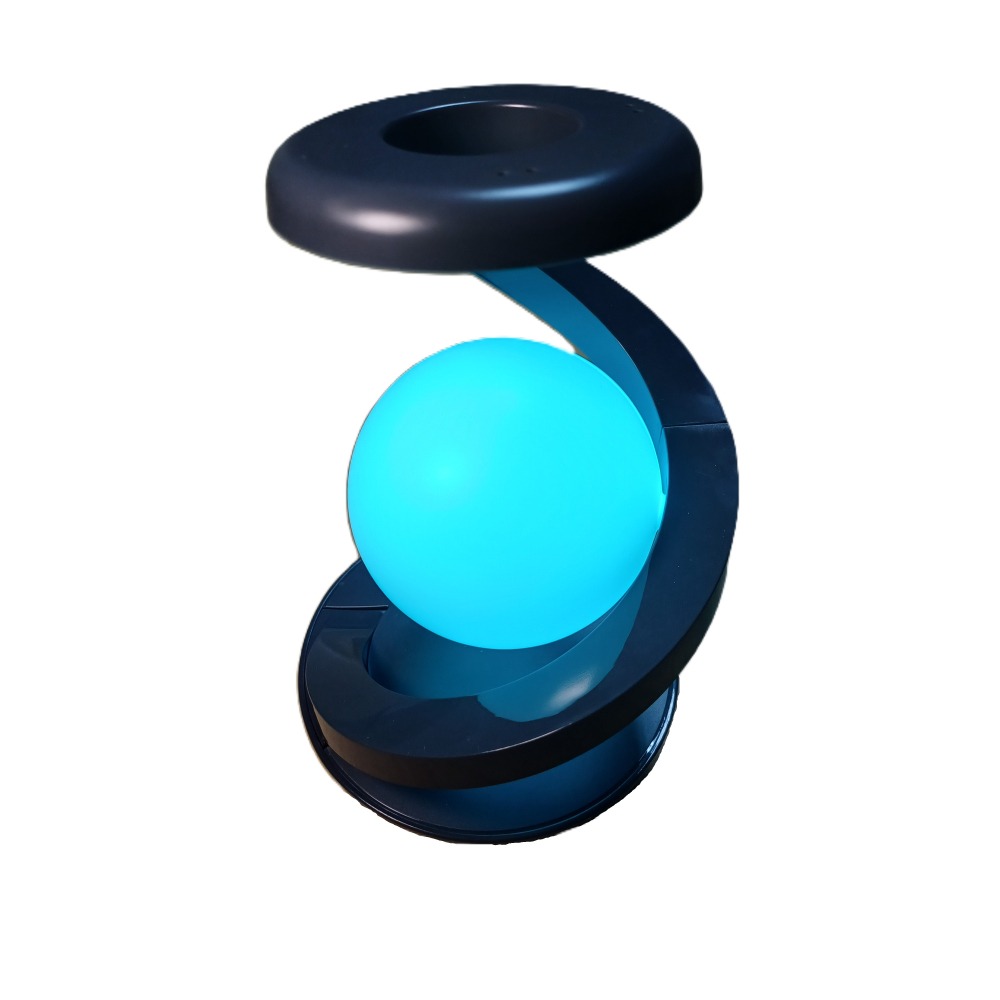 這款【旋轉懸浮燈】打破了傳統檯燈的沉悶。利用 Tensegrity(張力整體)力學原理,讓發光球體彷彿無視重力般懸浮於支架之中。搭配深空灰的極簡配色,無論是放在電競桌、床頭櫃還是辦公室,都能瞬間提升空間格調。