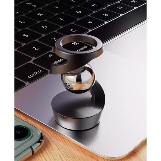 利用「視覺暫留」原理,讓中間的金屬球看起來彷彿「懸浮」在空中。
