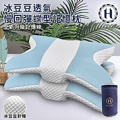 【Hilton 希爾頓】冰豆豆黃金分區釋壓蝶型記憶枕/圓筒手提袋包裝
