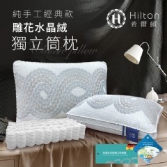 Hilton希爾頓純手工雕花水晶絨獨立筒釋壓枕/沒金黄色