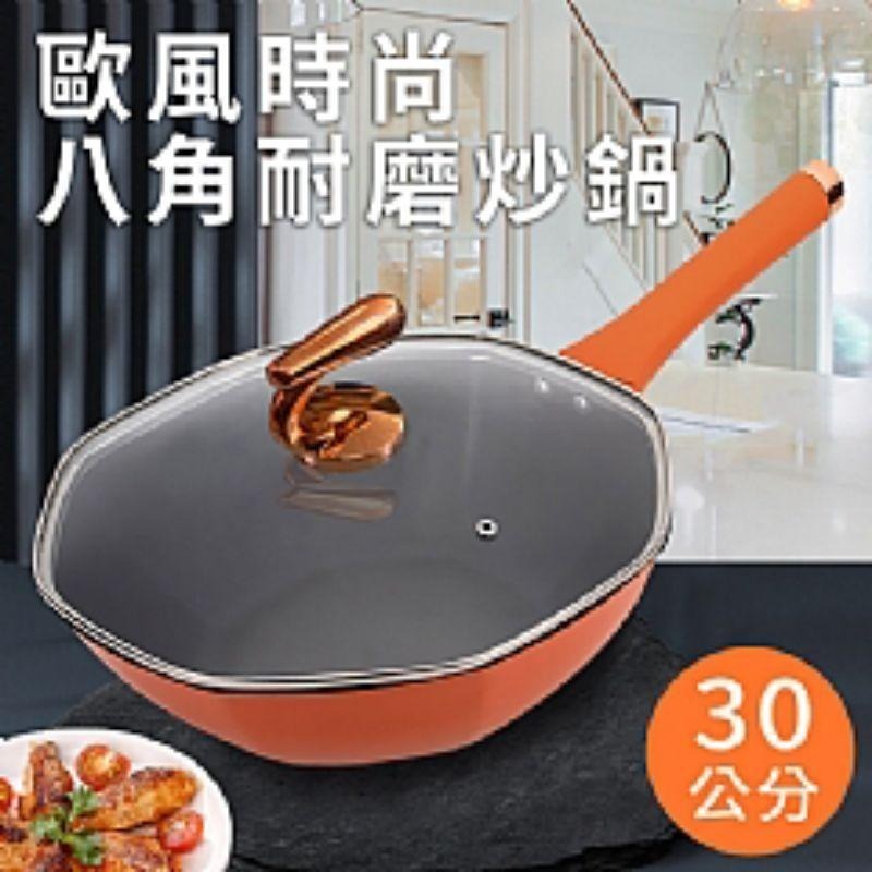【虎達麥皂陪省團】宅配/歐風時尚八角耐磨晶粒不沾炒鍋30公分(含蓋)