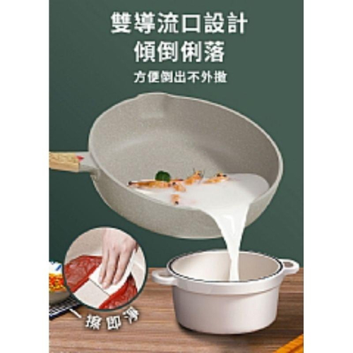 【虎達麥皂陪省團】宅配/飯石原礦炒鍋32公分無鍋蓋/贈撈杓/湯杓/鍋鏟