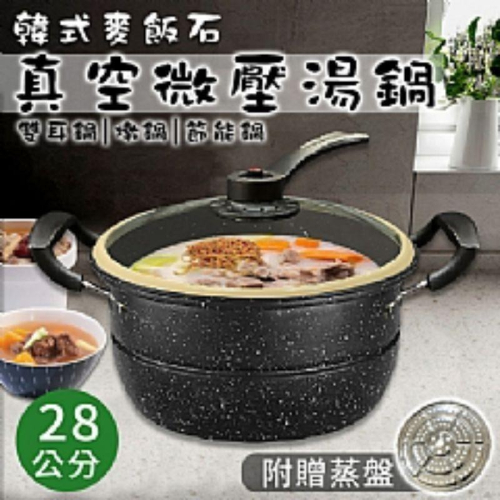 【虎達麥皂陪省團】宅配/韓式麥飯石真空微壓湯鍋/可變蒸籠/雙耳鍋/燉鍋/節能鍋(28公分)