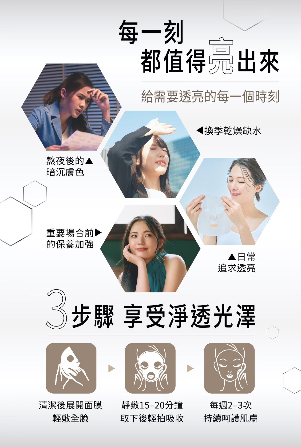 6. 為確保商品品質,開封後請立即使用,使用過後請勿重複再用或是敷著就寢。