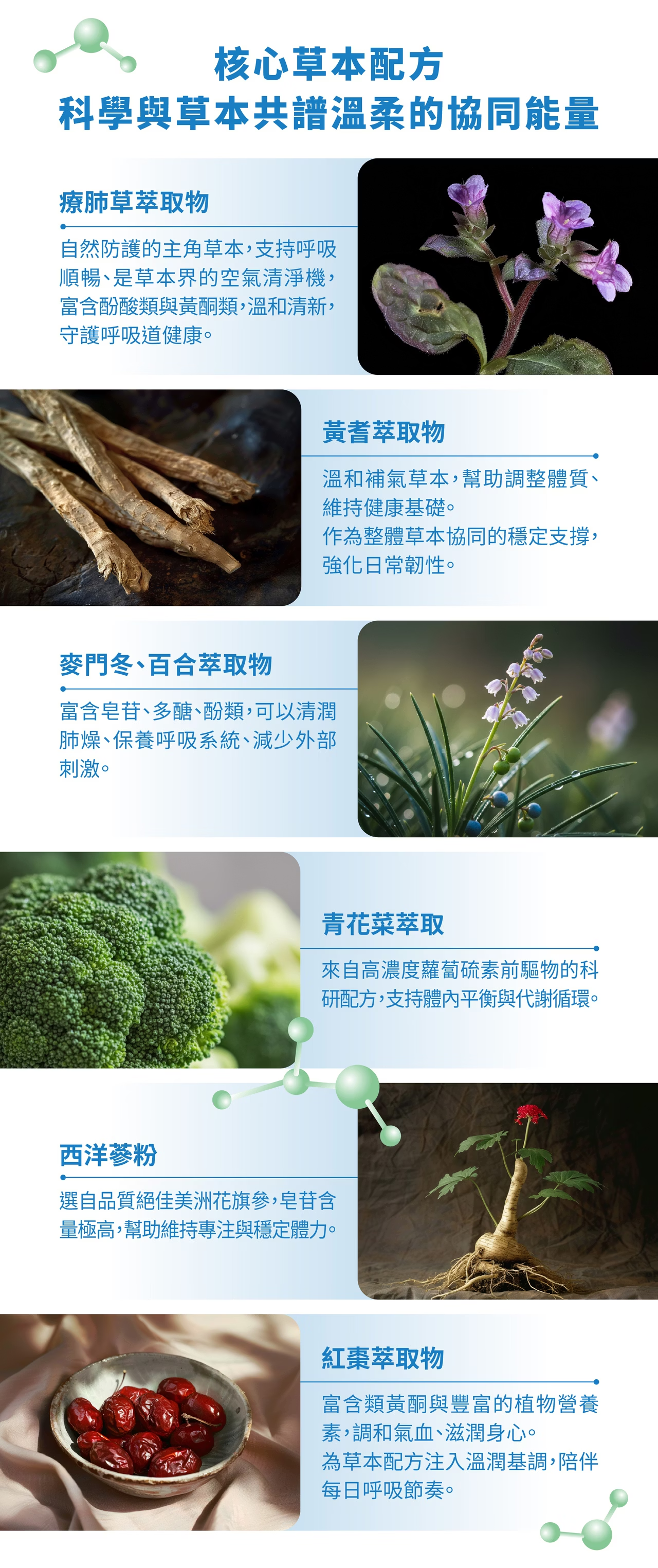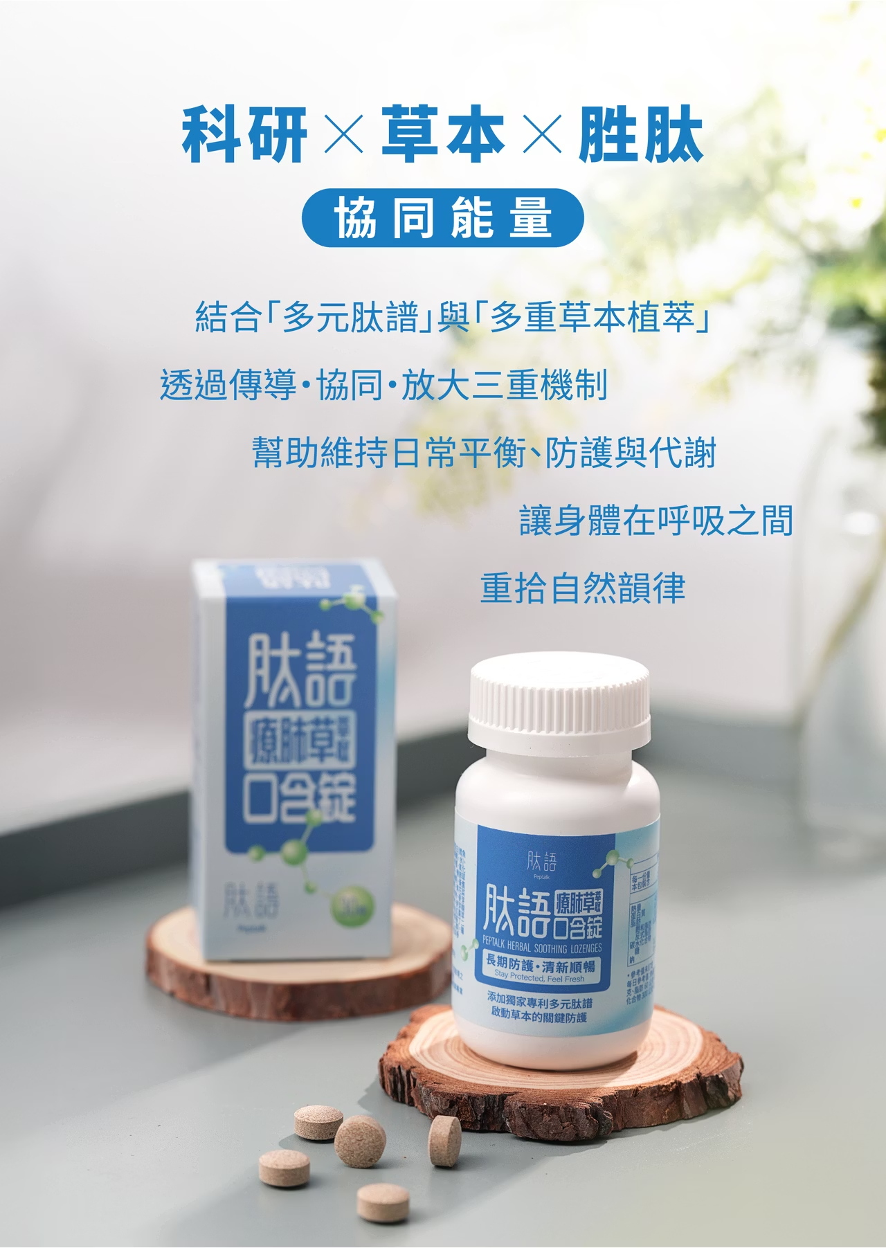 成分:微結晶狀α-纖維素、膠原蛋白(鱈魚膠原蛋白肽、賦形劑(麥芽糊精)、水)、蜂蜜粉(砂糖、麥芽糊精、蜂蜜、氧化澱粉(樹薯)、香料、焦糖色素)、療肺草萃取(療肺草萃取物、麥芽糊精)、黃耆萃取(黃耆萃取物、麥芽糊精)、青花菜粉、 麥門冬萃取(麥門冬萃取物、麥芽糊精)、百合萃取(百合萃取物、麥芽糊精)、 桑樹葉萃取物、紅棗萃取(紅棗萃取物、麥芽糊精)、薄荷粉(辛烯基丁二酸鈉澱粉、薄荷腦、香料、丙二醇)、羅漢果醣苷萃取物(甜味劑)、西洋參