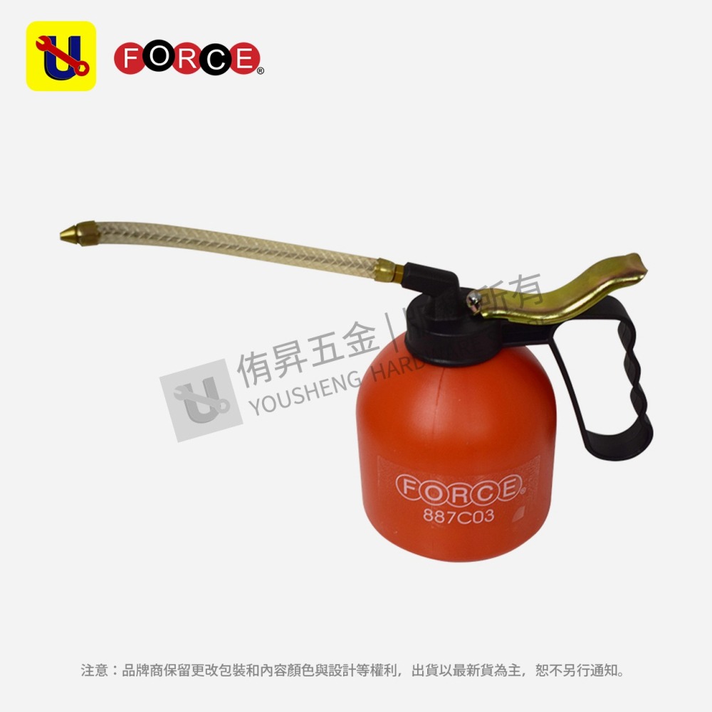 《侑昇五金》FORCE-紅色塑膠油壺 500ML 887C03 附紗管-含稅
