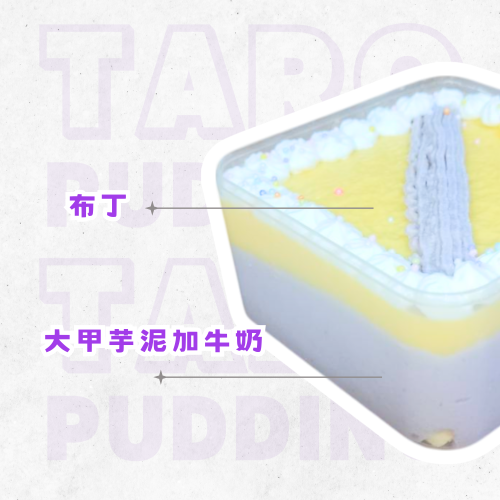 ◎成份:水、大甲芋頭豆餡、長春(紫)打發專用脂、雞蛋、全脂奶粉、麵粉、大豆沙拉油、布丁粉、玉米粉、鹽。