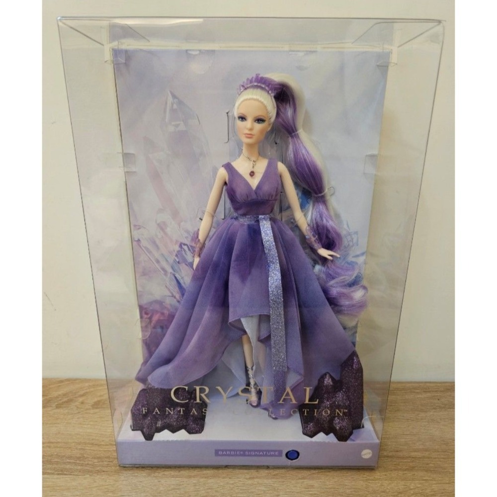 ​這款 Crystal Fantasy Collection 是芭比系列中極具藝術美感的代表作,靈感源自於大地深處的半寶石能量。首款 Amethyst(紫水晶) 以迷人的薰衣草紫與神祕氣息,為收藏家帶來一場視覺與心靈的饗宴。