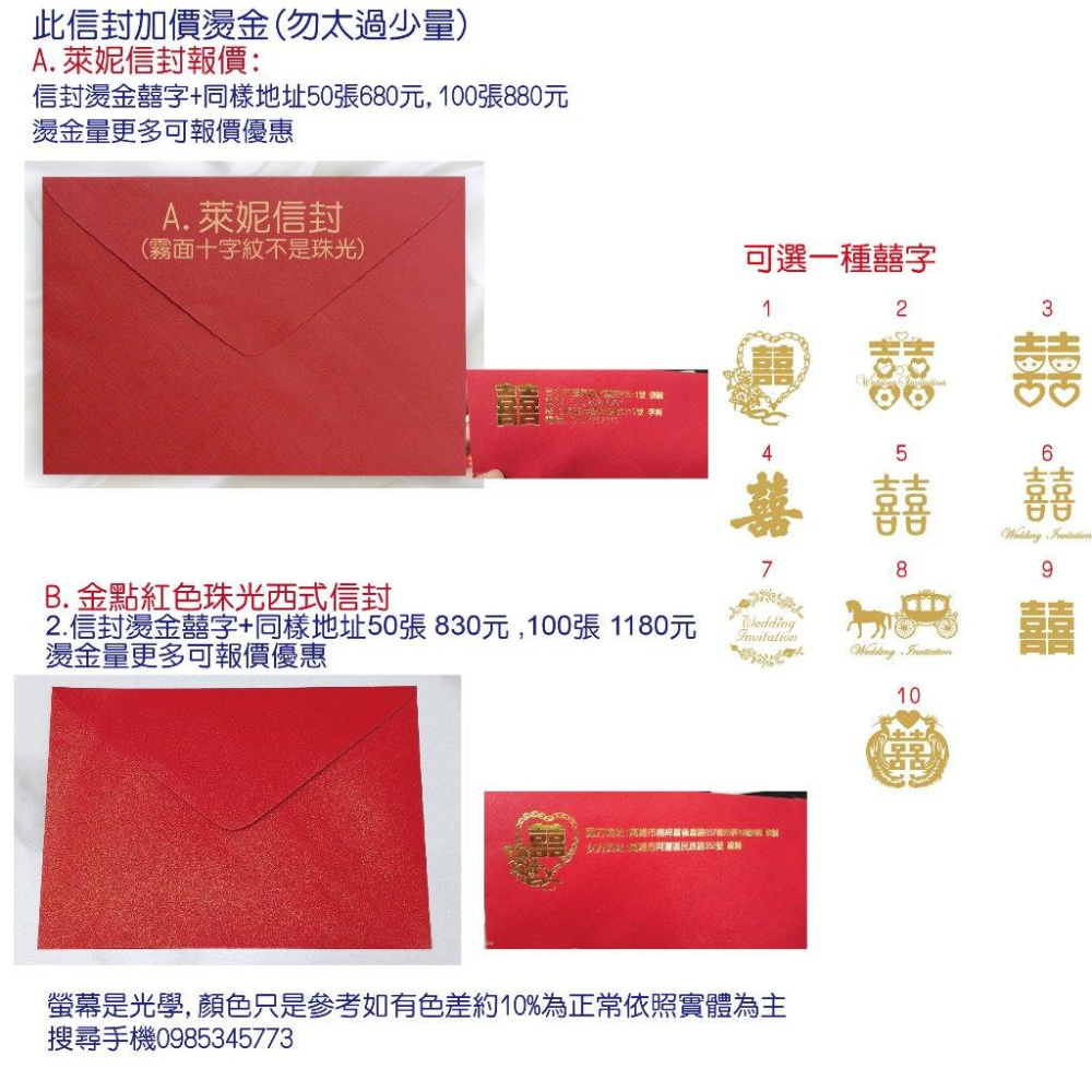 燙金紅色珠光信封 含版費客製地址電話 雙地址信封粉紅色珠光信封 紅色信封 萊妮信封 加價客製文字燙金信封袋 米琪印刷