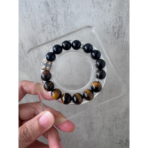 這條是整組裡最「不囉唆」的一條,沒有多餘裝飾,卻像一道結界,守住你的範圍,黑曜石沉穩厚實,虎眼石充滿氣勢,搭起來有種天生主場感。