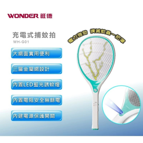 ★物品名稱:福利品~WONDER旺德 大網面三層金屬網充電式捕蚊拍 (WH-G01)