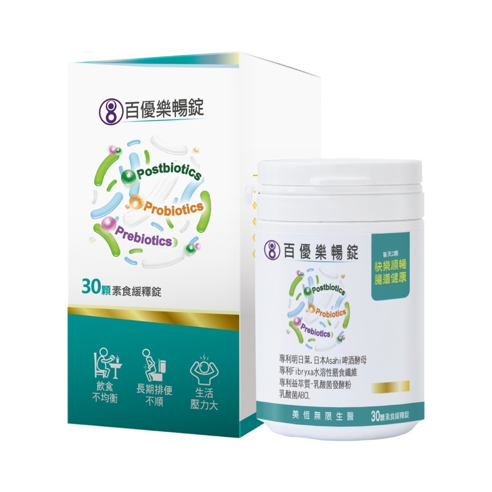 MEIHEN美恆 百優樂暢 素食緩釋錠 益生元 益生菌 益萃質 後生元 專利明日葉 順暢代謝 酵母 便祕 排便 美恆無限生醫