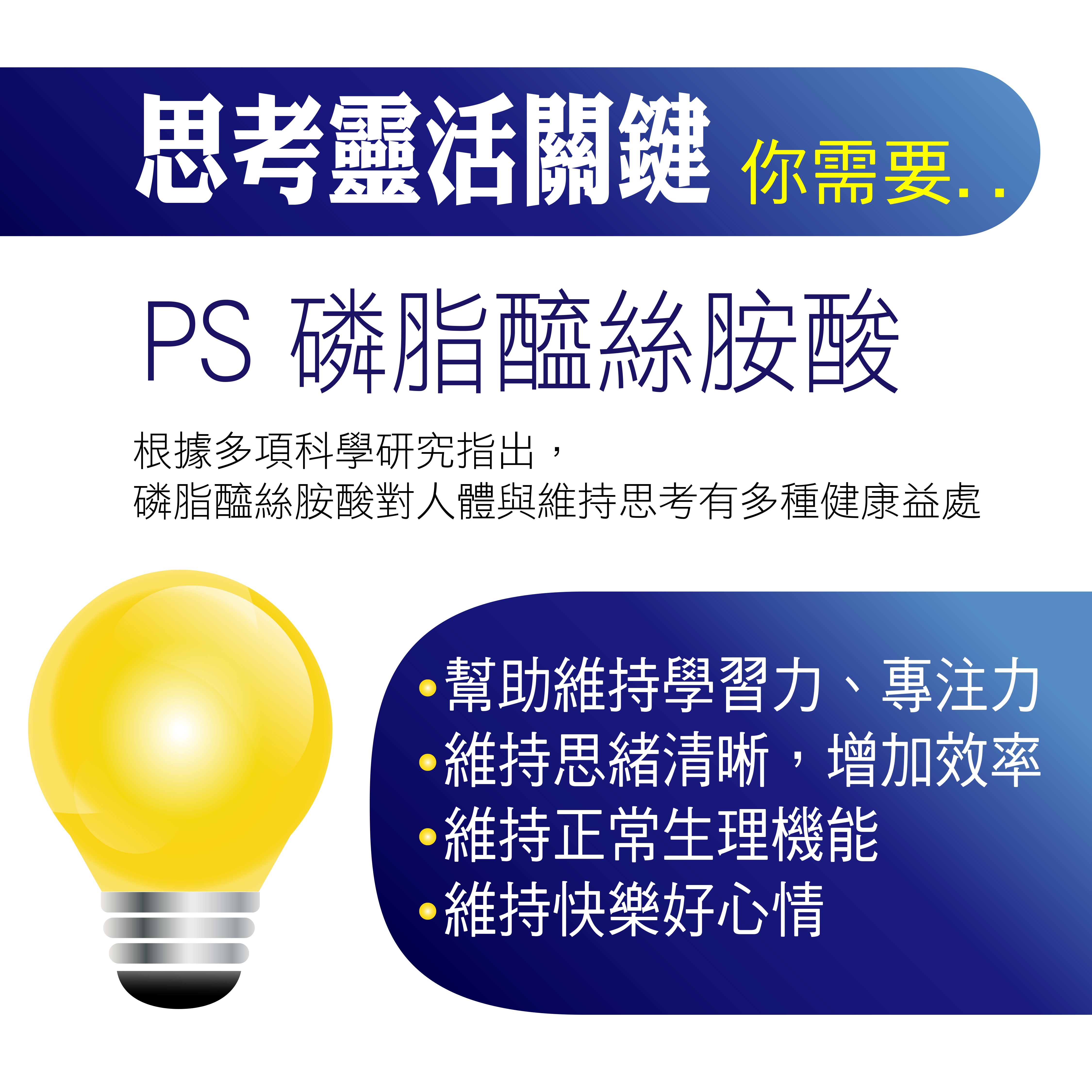 BIO PS磷脂醯絲胺酸(PS) 有助於白天保持靈活思考,提升專注力。