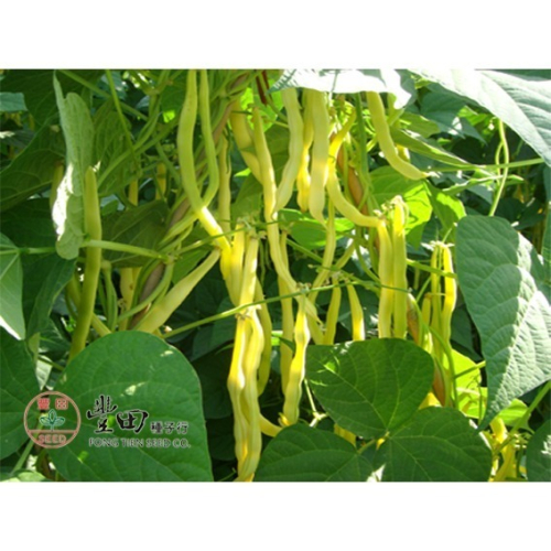 ~特性 蔓性,豆莢金黃色,莢型扁平寬大,無筋,莢柔嫩無纖維,口感好,顏色漂亮。